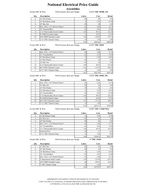 COST COLUMN IS A NATIONAL AVERAGE AND SHOULD BE VERIFIED FOR YOUR AREA