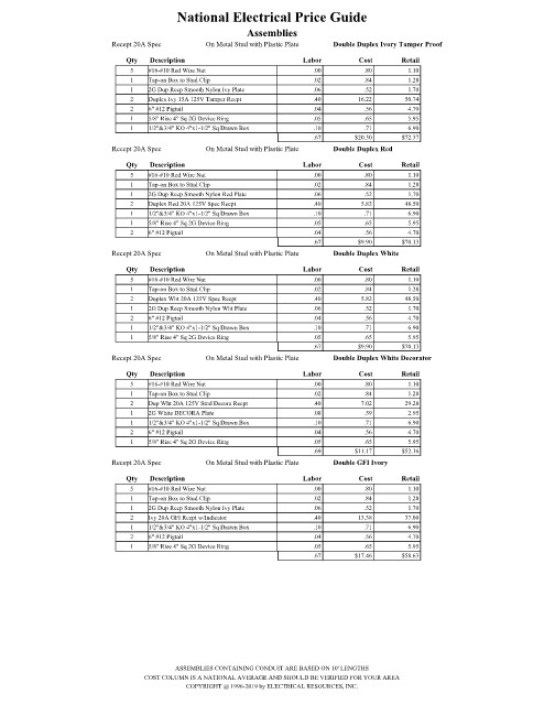 COST COLUMN IS A NATIONAL AVERAGE AND SHOULD BE VERIFIED FOR YOUR AREA