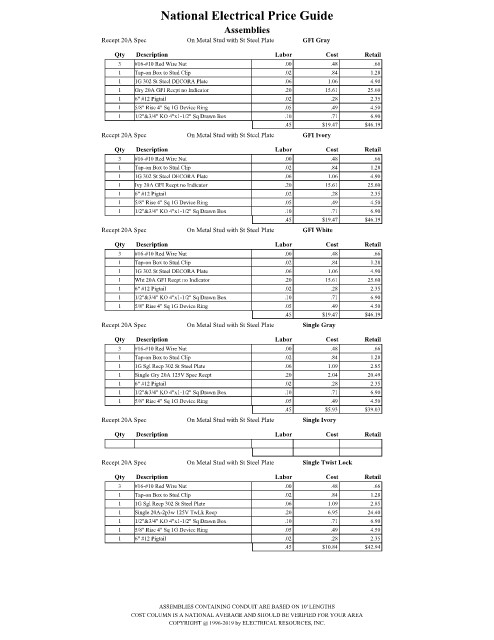 COST COLUMN IS A NATIONAL AVERAGE AND SHOULD BE VERIFIED FOR YOUR AREA