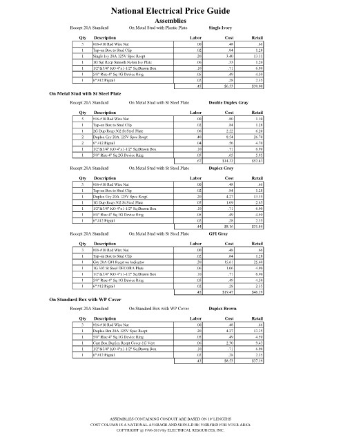 COST COLUMN IS A NATIONAL AVERAGE AND SHOULD BE VERIFIED FOR YOUR AREA