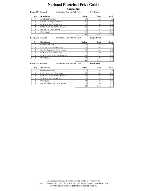 COST COLUMN IS A NATIONAL AVERAGE AND SHOULD BE VERIFIED FOR YOUR AREA