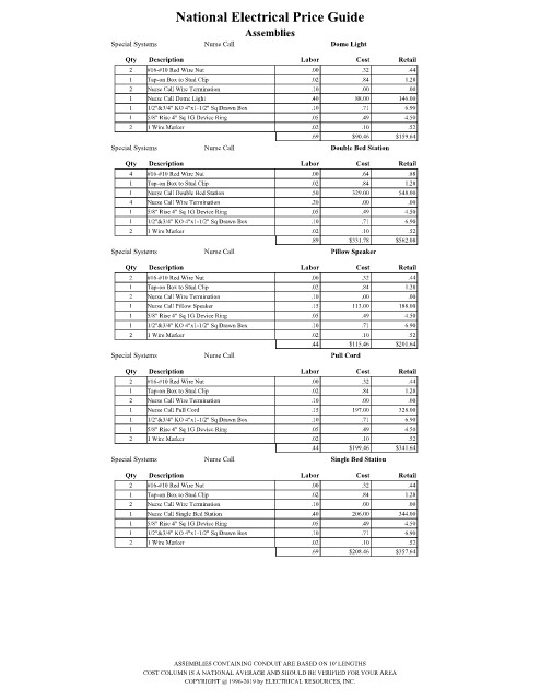 COST COLUMN IS A NATIONAL AVERAGE AND SHOULD BE VERIFIED FOR YOUR AREA