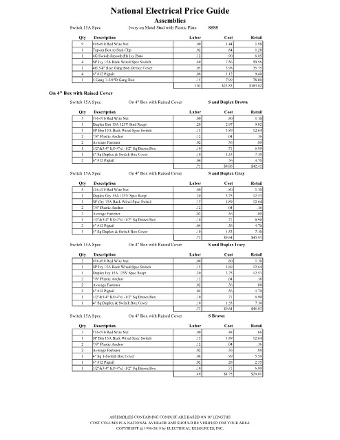 1 4" Sq 1-Switch Box Cover .08 .99 5.50