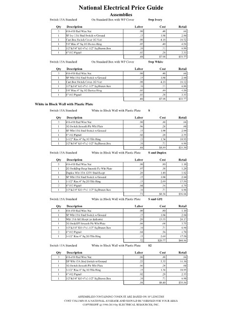 COST COLUMN IS A NATIONAL AVERAGE AND SHOULD BE VERIFIED FOR YOUR AREA