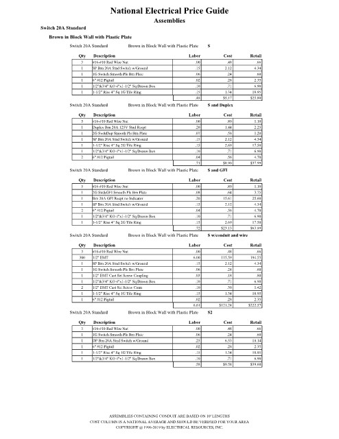 COST COLUMN IS A NATIONAL AVERAGE AND SHOULD BE VERIFIED FOR YOUR AREA