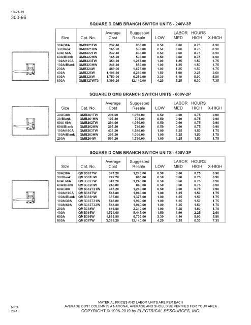 SQUARE D QMB BRANCH SWITCH UNITS - 240V-3P