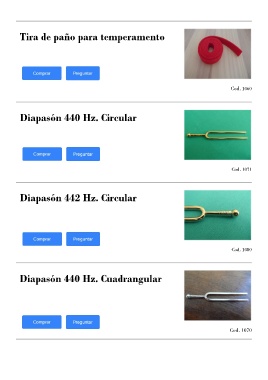 Tira de paño para temperamento Cod. 1060 Diapasón 440 Hz. Circular Cod. 1071 Diapasón 442 Hz. Circular Cod. 1080 Diapasón 440 Hz. Cuadrangular Cod. 1070