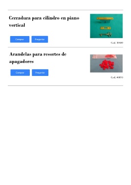 Cerradura para cilindro en piano vertical Cod. 30400 Arandelas para resortes de apagadores Cod. 40810