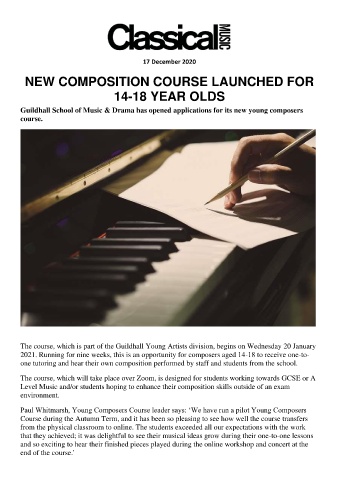 NEW COMPOSITION COURSE LAUNCHED FOR