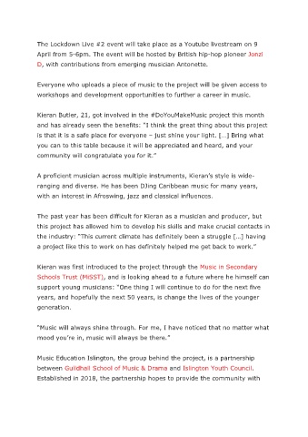 Kieran Butler, 21, got involved in the #DoYouMakeMusic project this month