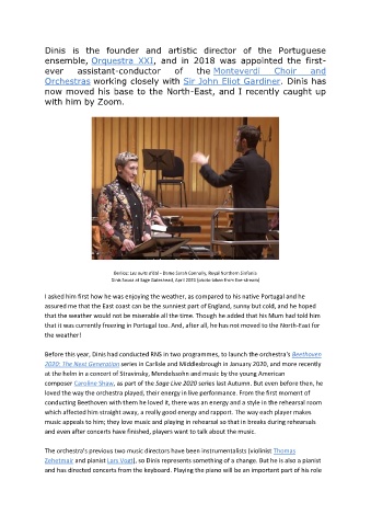 Before this year, Dinis had conducted RNS in two programmes, to launch the orchestra's Beethoven