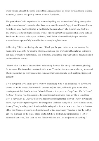 Essiedu, an actor Coel befriended at the Guildhall drama school) who is raped on a hook-up.