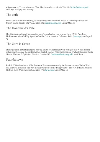 ship massacre. Terera also stars; Tom Morris co-directs. Bristol Old Vic (bristololdvic.org.uk),