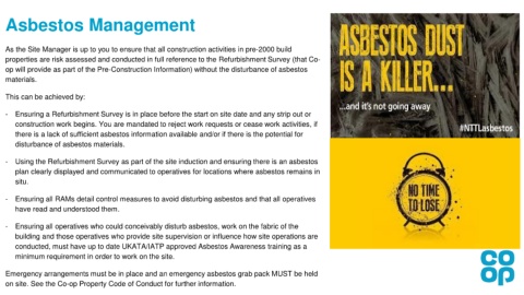 properties are risk assessed and conducted in full reference to the Refurbishment Survey (that Co-