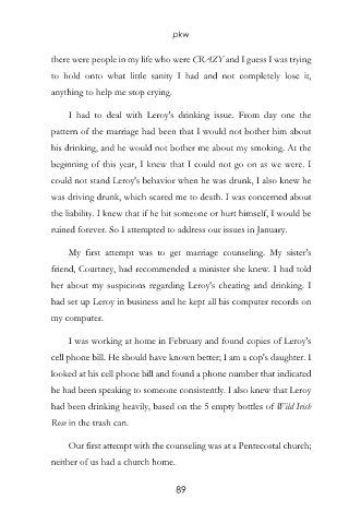 her about my suspicions regarding Leroy's cheating and drinking. I