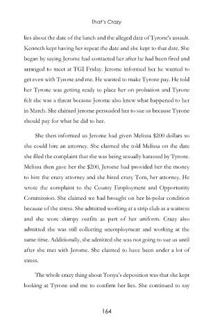 lies about the date of the lunch and the alleged date of Tyrone's assault.