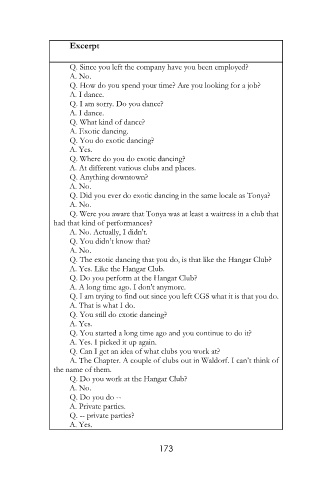 Q. The exotic dancing that you do, is that like the Hangar Club?