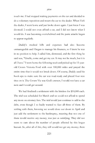 said was, "Giselle, come and get my car. It may not be much, but it is