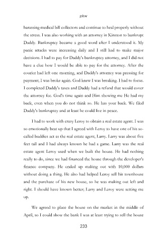 decisions. I had to pay for Daddy's bankruptcy attorney, and I did not