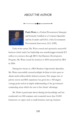 Program. Ms. Watts exited the business in 2005 and joined the SBA