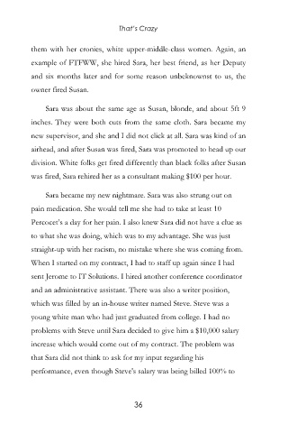 was fired, Sara rehired her as a consultant making $100 per hour.