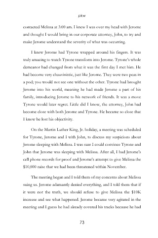 John that Jerome was sleeping with Melissa. After all, I had Jerome's