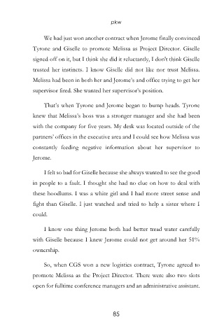 Tyrone and Giselle to promote Melissa as Project Director. Giselle