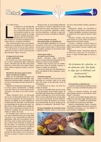 son abundantes en los granos de cacao”, ex- disfruta con moderación”, dijo Devon Peart. Mujeres embarazadas deben consultar