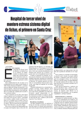 de Montero en Santa Cruz web y móvil que conecta directamente a los 90% de la población atendida en el hospi-
