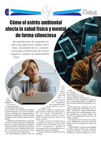 el estrés ambiental, una forma de tensión ciada, explicó a Forbes que este tipo de es- Bean subrayó que el estrés ambiental “cam-