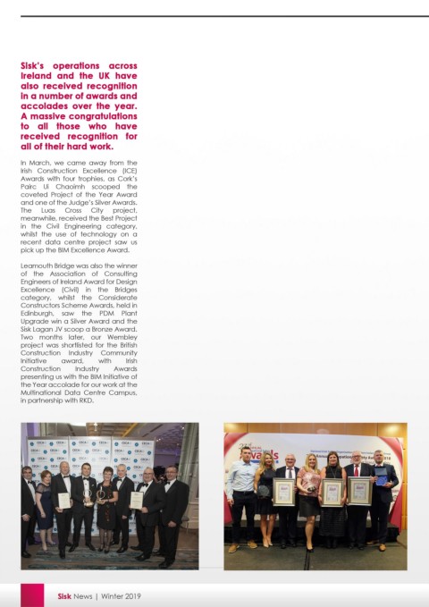 for two Irish projects, as the Sisk Luas Awards, whilst the Sisk team at the year in being top of the charts.
