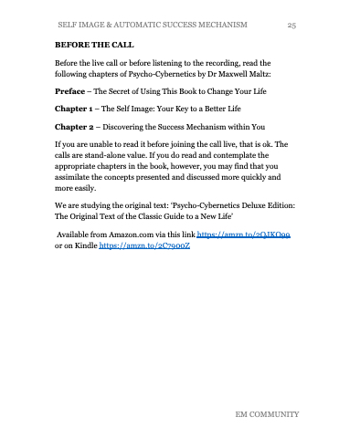 Before the live call or before listening to the recording, read the following chapters of Psycho-Cybernetics by Dr Maxwell Maltz: