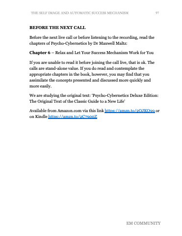 Before the next live call or before listening to the recording, read the chapters of Psycho-Cybernetics by Dr Maxwell Maltz:
