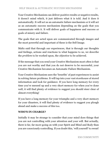 SELF IMAGE & AUTOMATIC SUCCESS MECHANISM 21