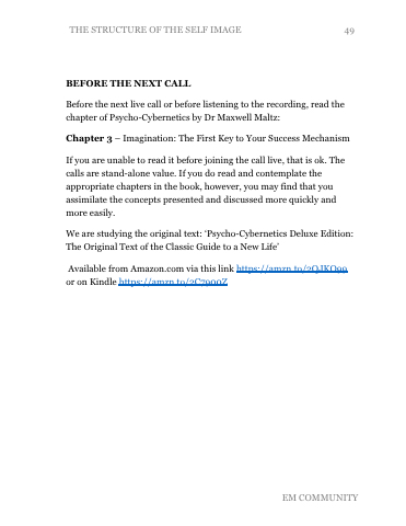 Before the next live call or before listening to the recording, read the chapter of Psycho-Cybernetics by Dr Maxwell Maltz: