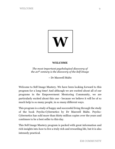 Welcome to Self Image Mastery. We have been looking forward to this program for a long time! And although we are excited about all of our programs in the Empowerment Mentoring Community, we are particularly excited about this one - because we believe it will be of so much help to so many people, in so many different ways.