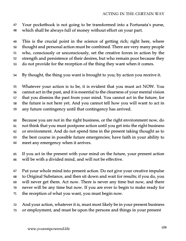 54 By thought, the thing you want is brought to you; by action you receive it.