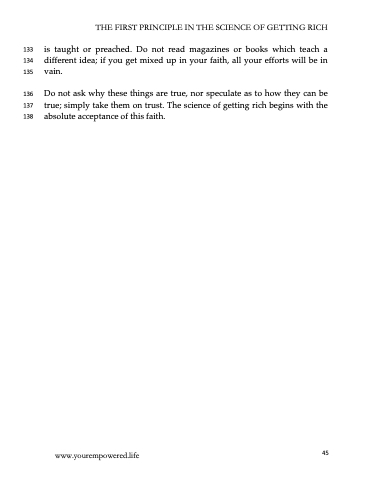 137 true; simply take them on trust. The science of getting rich begins with the