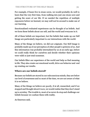 All of these beliefs are important, but the beliefs that make up our Self Image are particularly important to our interactions with the world.