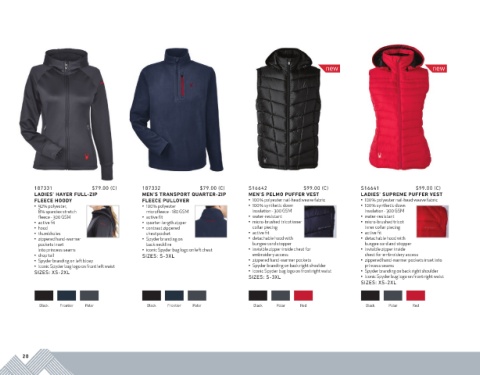 LADIES’ HAYER FULL-ZIP MEN’S TRANSPORT QUARTER-ZIP MEN’S PELMO PUFFER VEST LADIES’ SUPREME PUFFER VEST