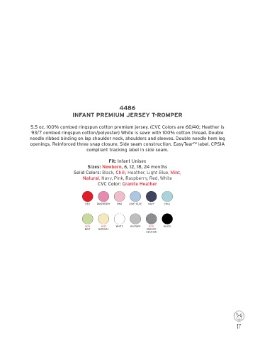 openings. Reinforced three snap closure. Side seam construction. EasyTear™ label. CPSIA