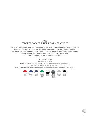 4.5 oz. 100% combed ringspun cotton fine jersey (CVC Colors are 60/40; Heather is 93/7