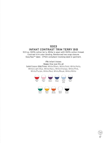 Solid Colors (Bib/Trim): White/Black, White/Gold, White/Kelly,