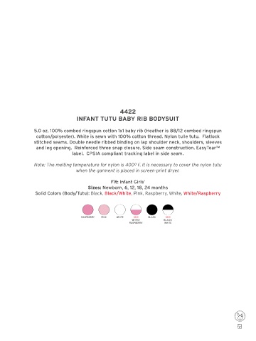Solid Colors (Body/Tutu): Black, Black/White, Pink, Raspberry, White, White/Raspberry