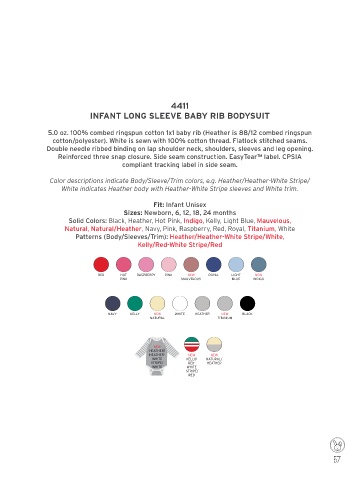 Color descriptions indicate Body/Sleeve/Trim colors, e.g. Heather/Heather-White Stripe/