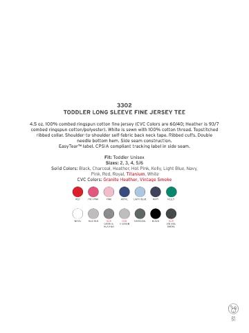 4.5 oz. 100% combed ringspun cotton fine jersey (CVC Colors are 60/40; Heather is 93/7