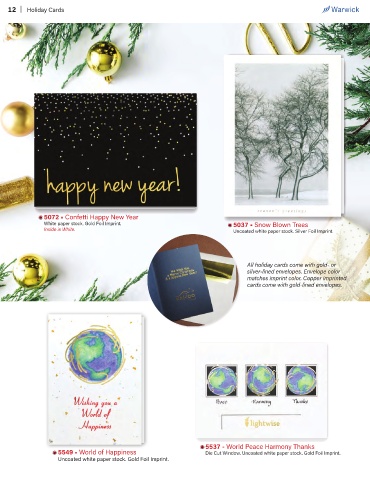 5549 • World of Happiness Die Cut Window. Uncoated white paper stock. Gold Foil Imprint.