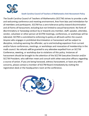 all members and participants. SCCTM has a zero-tolerance policy toward discrimination