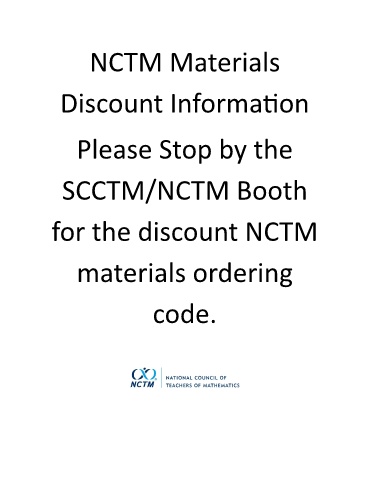 NCTM Materials Discount Informa�on Please Stop by the SCCTM/NCTM Booth for the discount NCTM materials ordering code.