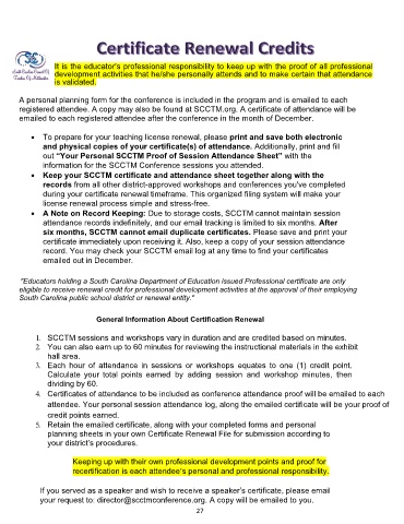 registered attendee. A copy may also be found at SCCTM.org. A certificate of attendance will be